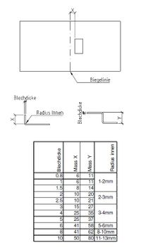 Material | Abkantlänge | 180° - 90° | 90° - 65° | 65° - 35° | Umschlag |