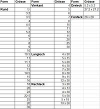 1000 mm | bis 12 mm | bis 5 mm | bis 3 mm | 2 mm | |